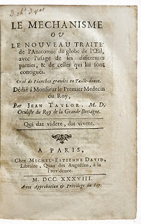 TAYLOR (John). Le méchanisme ou le nouveau traité de l'anatomie du globe de l'oeil, 1738