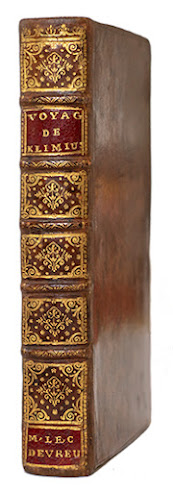 [HOLBERG (Louis de)]. Voyage de Nicolas Klimius dans le monde souterrain, contenant une nouvelle théorie de la Terre, et l'histoire d'une cinquième Monarchie inconnue jusqu'à présent ... trad. du latin par M. de Mauvillon. Copenhague, J. Preuss, 1741, in 12, de 3ff. 388pp., ill. d'un portrait en front. de 2 gravures curieuses d'habitants du monde souterrain h.t. et d'une grande planche se dépl. du plan de ce monde, pl. veau marbré époque, dos orné, marque d'appartenance frappée en queue du dos "M. le C. d'Evreu" sans doute Louis-Henri de La Tour d’Auvergne (1679-1753) comte d’Evreux, fils du duc de Bouillon et petit-neveu du maréchal de Turenne, entre 1718 et 1722, il fait ériger un hôtel particulier à Paris, aujourd'hui plus connu sous le nom de palais de l'Élysée; ff. lég. brunis sinon bel exemplaire.